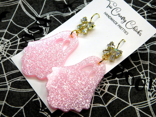 Baby Pink Black & White Ghost Arch Dangles w/ Bow Tops