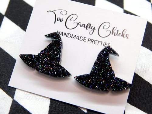White Ghosts w/ Black Witch Hat Hexagon Hoops