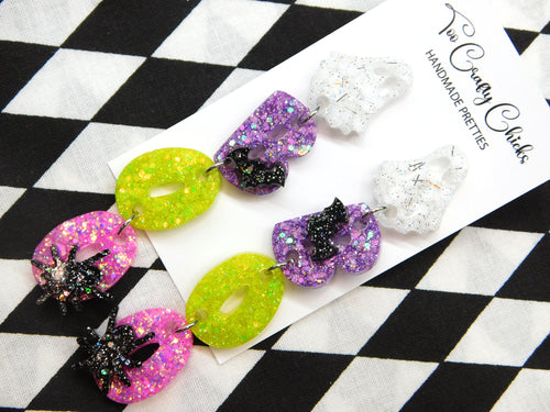 PRE ORDER - Pink Lime Green & Purple BOO Dangles w/ Ghost Tops