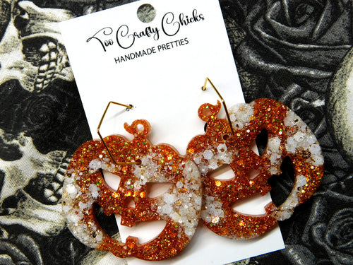 PRE ORDER - Purple & Halloween Confetti Pumpkin Dangles w/ Black Ghost Tops